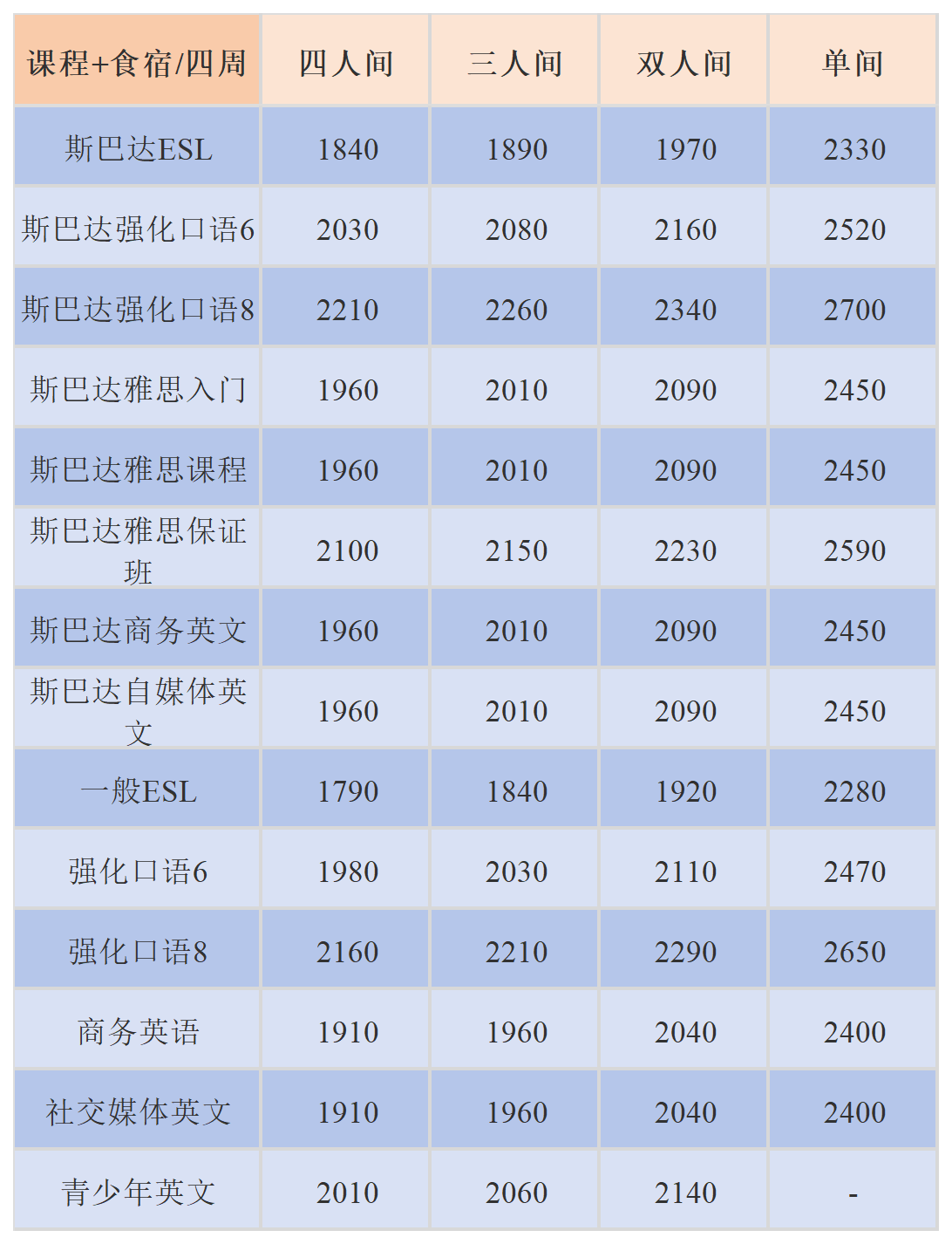 注册费USD$100 未包含披索费用:宿舍押金、水电费、学习许可、延签及iCard、书籍费、管理费